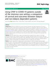 Using CPAP in COVID-19 patients outside of the intensive care setting: a comparison of survival and outcomes between dialysis and non-dialysis dependent patients.