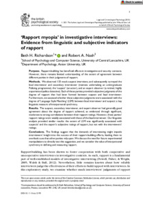‘Rapport myopia’ in investigative interviews: Evidence from linguistic and subjective indicators of rapport.