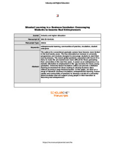 Situated learning in a business incubator: Encouraging students to become real entrepreneurs.