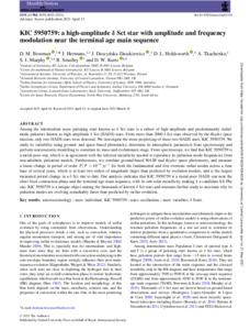 Bowman, D.M., Hermans, J., Daszyńska-Daszkiewicz, J., Holdsworth, Daniel Luke orcid iconORCID: 0000-0003-2002-896X, Tkachenko, A., Murphy, S.J., Smalley, B. and Kurtz, Donald Wayne orcid iconORCID: 0000-0002-1015-3268 (2021) KIC 5950759: a high-amplitude δ Sct star with amplitude and frequency modulation near the terminal age main sequence. Monthly Notices of the Royal Astronomical Society, 504 (3). pp. 4039-4053. ISSN 0035-8711