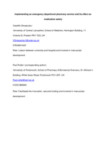 Sinopoulou, Vasiliki orcid iconORCID: 0000-0002-2831-9406, Rutter, Paul, Price, Gareth, Heald, Victoria, Kaba, Suhail and Kwok, Jon (2021) Implementing an emergency department pharmacy service and its effect on medication safety. International Journal of Pharmacy Practice, 29 (4). pp. 394-396. ISSN 0961-7671