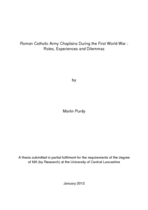 Purdy, Martin (2012) Roman Catholic Army Chaplains During the First World War : Roles, Experiences and Dilemmas. Masters thesis, University of Central Lancashire.