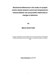 Patel, Mansi H (2011) Biochemical differences in the modes of synaptic vesicle release between control and streptozotocin-induced diabetic rats and possible relationship to changes in behaviour. Masters thesis, University of Central Lancashire.