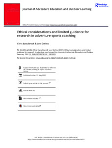 Eastabrook, Chris and Collins (2021) Ethical Considerations and Limited Guidance for Research in Adventure Sports Coaching. Journal of Adventure Education and Outdoor Learning . ISSN 1472-9679