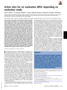 The nucleation of ice crystals in clouds is poorly understood, despite being of critical importance for our planet's climate. Nucleation occurs largely at rare "active sites" present on airborne particles such as mineral dust, but the nucleation pathway is distinct under different meteorological conditions. These give rise to two key nucleation pathways where a particle is either immersed in a supercooled liquid water droplet (immersion freezing mode) or suspended in a supersaturated vapor (deposition mode). However, it is unclear if the same active sites are responsible for nucleation in these two modes. Here, we directly compare the sites that are active in these two modes by performing immersion freezing and deposition experiments on the same thin sections of two atmospherically important minerals (feldspar and quartz). For both substrates, we confirm that nucleation is dominated by a limited number of sites and show that there is little correlation between the two sets of sites operating in each experimental method: across both materials, only six out of 73 sites active for immersion freezing nucleation were also active for deposition nucleation. Clearly, different properties determine the activity of nucleation sites for each mode, and we use the pore condensation and freezing concept to argue that effective deposition sites have size and/or geometry requirements not of relevance to effective immersion freezing sites. Hence, the ability to nucleate is pathway dependent, and the mode of nucleation has to be explicitly considered when applying experimental data in cloud models. [Abstract copyright: Copyright © 2021 the Author(s). Published by PNAS.]