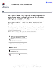 Drop jump neuromuscular performance qualities associated with maximal horizontal deceleration ability in team sport athletes.