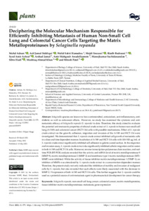 Adnan, Mohd, Siddiqui, Arif Jamal, Hamadou, Walid Sabri, Snoussi, Mejdi, Badraoui, Riadh, Ashraf, Syed Amir, Jamal, Arshad, Awadelkareem, Amir Mahgoub, Sachidanandan, Manojkumar et al (2021) Deciphering the Molecular Mechanism Responsible for Efficiently Inhibiting Metastasis of Human Non-Small Cell Lung and Colorectal Cancer Cells Targeting the Matrix Metalloproteinases by Selaginella repanda. Plants, 10 (5). e979.