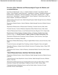 Shahcheraghi, Seyed Hossein, Aljabali, Alaa A.A., Al Zoubi, Mazhar S., Mishra, Vijay, Charbe, Nitin B., Haggag, Yusuf A., Shrivastava, Garima, Almutary, Abdulmajeed G., Alnuqaydan, Abdullah M. et al (2021) Overview of key molecular and pharmacological targets for diabetes and associated diseases. Life Sciences, 278 (119632). ISSN 0024-3205