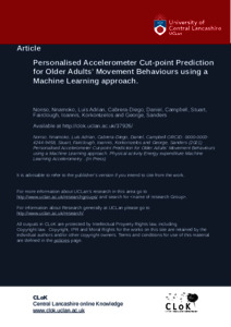 Personalised Accelerometer Cut-point Prediction for Older Adults’ Movement Behaviours using a Machine Learning approach.