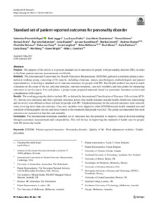 The purpose of the article is to present standard set of outcomes for people with personality disorder (PD), in order to facilitate patient outcome measurement worldwide.