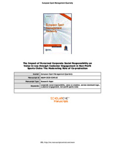 The impact of perceived corporate social responsibility on value-in-use through customer engagement in non-profit sports clubs: the moderating role of co-production.