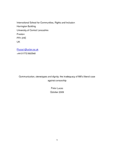 Communication, stereotypes and dignity: the inadequacy of the liberal case against censorship.
