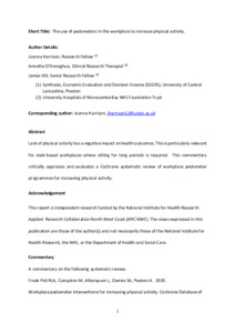 Lack of physical activity has a negative impact on health outcomes. This is particularly relevant for desk-based workplaces where sitting for long periods is required. This commentary critically appraises and evaluates a Cochrane systematic review of workplace pedometer programmes for increasing physical activity.