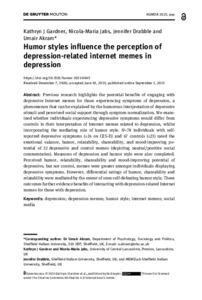 symptom normalisation, research highlights possible benefits of depressive internet memes for depressed individuals. We examined whether individuals experiencing depressive symptoms would differ from controls in their interpretation of internet memes related to depression, whilst incorporating the mediating role of humour style. N=78 individuals with self-reported depressive symptoms (24 on CES-D) and 67 controls (23) rated the emotional valance, humour, relatability, shareability, and mood-improving potential of 32 depressive and control memes (depicting neutral/positive social commentaries). Measures of depression and humour style were also completed. Perceived humour, relatability, shareability and mood-improving potential of depressive, but not control, memes were greater amongst individuals displaying depressive symptoms. However, differential ratings of humour, shareability and relatability were mediated by the extent of ones self-defeating humour style. These outcomes further evidence benefits of interacting with depression-related internet memes for those with depression.