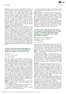 Over 5 million adults in England are living with depression, with the highest prevalence rates recorded in the North West and North East of England, 12.88% and 11.53%, respectively (NHS Digital, 2019). Depression is also associated with the highest rates of self-harm and suicide (SH&S) (Singhal, Ross, Seminog, Hawton, & Goldarce, 2014). The impact of SH&S on a family ranges from shock and horror to, blame, secrecy and shame. Survivors may also be negatively judged or self-stigmatise (Cerel, Jordan, & Duberstein, 2008). Managing self-harm episodes has a significant financial implication for the NHS (Tsiachristas, et al., 2017). If high-risk individuals are identified and intervened early, it would not only save lives but also potentially reduce financial strains. The aim of the audit is to evaluate the performance of risk assessment and management of self-harm and suicide at the Reedyford Healthcare Group, Nelson, England, and to determine whether the primary care practice is meeting the standards of the National Institute for Health and Care Excellence (NICE) guidelines for adults with depression.