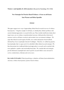 New Strategies for Research in Clinical Practice: A focus on self–harm.