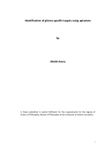 Arora, Mohit (2020) Identification of glioma specific targets using aptamers. Doctoral thesis, University of Central Lancashire.