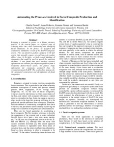 officer’s time. In the latter, we built a small database of composites that could be used to search for matching identities. It was found that pixel intensity (texture) information was valuable for composites produced from a traditional feature-based system, but feature shape information for composites produced from the recognition-based EvoFIT. The results show promise for the automated construction and identification of facial composites.