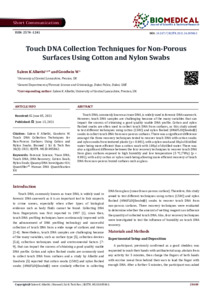 Touch DNA Collection Techniques for Non-Porous Surfaces using Cotton and Nylon Swabs.