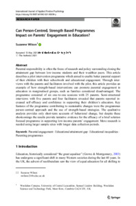 Can Person-Centred, Strength Based Programmes Impact on Parents’ Engagement in Education?