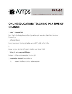 In transnational education, and especially architectural programmes, the question of developing positive learning environments while enabling a distinctive architectural school position to emerge has been a constant dialogue with staff and students over the course of the last eighteen months within the Grenfell-Baines Institute of Architecture Hong Kong (GBIA-HK). The course initially offered as a unique part-time, transnational professionally validated course in architecture and from its inception adopted strategies to enable blended online provision with a complementing flying faculty team commuting across two continents. More recently however GBIAHK has needed to respond to both civil disturbances and global health issues, by developing resilient, agile, and positive learning environments for our students and staff.