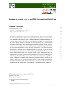 Laitinen, Timo Lauri mikael orcid iconORCID: 0000-0002-7719-7783 and Dalla, Silvia orcid iconORCID: 0000-0002-7837-5780 (2021) Access of cosmic rays to an ICME from external field lines. In: 37th International Cosmic Ray Conference (ICRC 2021), 12-23 July 2021, Online – Berlin, Germany.