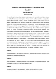 The complexity of mathematics has been pondered since the dawn of time and it is considered one of the fundamental skills required of prescribers to facilitate effective, safe practice. Williams & Davis (2016) remind us that the potential for serious health consequences for patients is dependent on the accuracy (or inaccuracy) of the clinician’s drug calculations. Indicator 4.6 in ‘A competency framework for all prescribers’ (Royal Pharmaceutical Society, 2016) requires that the prescribing practitioner “Accurately completes and routinely checks calculations relevant to prescribing and practical dosing”. However, there remains a significant amount of anxiety in respect of numerical literacy amongst some clinicians, often characterised by negative emotions that interfere with performance (Rolison, Morsanyi & Peters, 2020). Opportunities for maths education is often avoided in those with maths anxiety, thus compounding the problem. Exposure to drug calculations and embracing numerical problem-solving should be a central component of the prescriber’s continuous professional development, particularly if maths anxiety is acknowledged. The Royal College of Nursing (2019) advocate that harm to patients will be minimised if drug calculations are not rushed, but divided into smaller steps, using mental arithmetic, a calculator, applying a formula and using conversion tables. Try the following drug calculations and remember that Sir Isaac Newton [1643-1727] once said "Truth [the answer] is ever to be found in the simplicity, and not in the multiplicity and confusion of things." To this end, try to keep it simple!