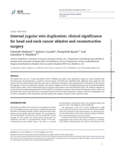 Hedayat, Fatemeh, Lauder, Joshua J., Kyzas, Panayiotis and Vassiliou, Leandros V. (2021) Internal jugular vein duplication: clinical significance for head and neck cancer ablative and reconstructive surgery. Journal of Surgical Case Reports, 2021 (7). rjab300.