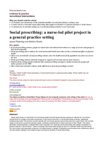 Pickering, Joyce and Smyth, Kathryn Wendy (2021) Social prescribing: a nurse-led pilot project in a general practice setting. Primary Health Care . ISSN 0264-5033