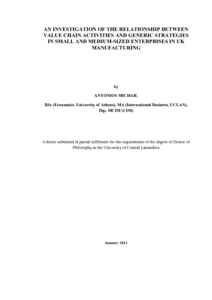 Michail, Antonios (2011) An investigation of the relationship between value chain activities and generic strategies in Small and Medium-sized Enterprises in UK manufacturing. Doctoral thesis, University of Central Lancashire.