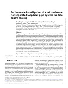 Performance investigation of a micro-channel flat separated loop heat pipe system for data centre cooling.