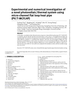 Experimental and numerical investigation of a novel photovoltaic/thermal system using micro-channel flat loop heat pipe (PV/T-MCFLHP).