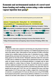 Economic and environmental analysis of a novel rural house heating and cooling system using a solar-assisted vapour injection heat pump.