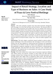 Shujaat, Sobia, Tahir, Iram and Tahir, Owais (2021) Impact of Retail Strategy, Location and Type of Business on Sales: A Case Study of Peace & Love Festival Borlänge. NUST Business Review, 3 . pp. 28-37.