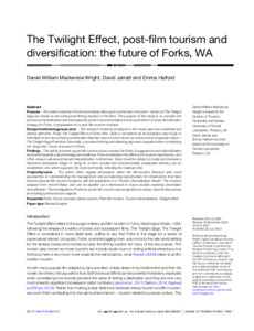 The Twilight Effect, post-film tourism and diversification: the future of Forks, WA.
