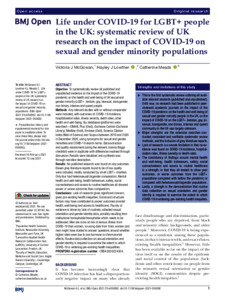 Life under COVID-19 for LGBT+ people in the UK: systematic review of UK research on the impact of COVID-19 on sexual and gender minority populations.