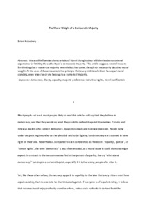 It is a still-influential characteristic of liberal thought since Mill that it advances moral arguments for limiting the authority of a democratic majority. This article suggests several reasons for thinking that a numerical majority nevertheless has some, though not necessarily decisive, moral weight. At the core of these reasons is the principle that every individual citizen has equal moral standing, even when he or she belongs to a numerical majority.