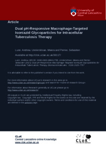 Dual pH-Responsive Macrophage-Targeted Isoniazid Glycoparticles for Intracellular Tuberculosis Therapy.
