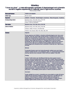 ‘I know my place’ ; a meta-ethnographic synthesis of disadvantaged and vulnerable women’s negative experiences of maternity care in high-income countries.