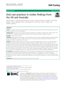 Aims: To examine current practice, perceptions of healthcare professionals and factors affecting provision for oral care post-stroke in the UK and Australia.