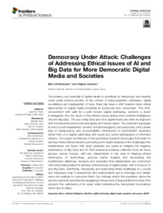 Democracy Under Attack: Challenges of Addressing Ethical Issues of AI and Big Data for More Democratic Digital Media and Societies.