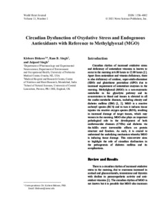Circadian Dysfunction of Oxydative Stress and Endogenous Antioxidants with Reference to Methylglyoxa.