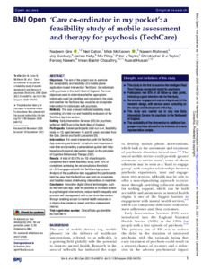 ‘Care Co-ordinator In My Pocket’. A Feasibility study of Mobile-Assessment and Therapy for Psychosis (TechCare).
