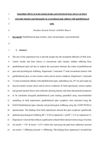 patellofemoral pain, in semi-custom insole and no-insole conditions. Experiment 2 examined 13 male recreational athletes with patellofemoral pain, undertaking run, 45° cut and-single leg hop movements in knee sleeve and no-sleeve conditions. In both experiments, motion capture and ground reaction forces were collected, allowing kinetics and three-dimensional kinematics