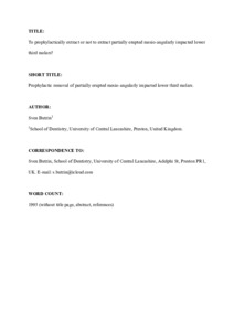 Considering prophylactic extractions While an individual risk assessment is paramount, prophylactic removal of partially erupted MAIM3Ms has been shown to have positive effects on oral health-related quality of life, to relieve the pressure on secondary care services and to be economically feasible for the NHS.