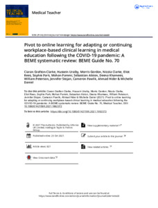 Pivot to online learning for adapting or continuing workplace-based clinical learning in medical education following the COVID-19 pandemic: A BEME systematic review: BEME Guide No. 70.