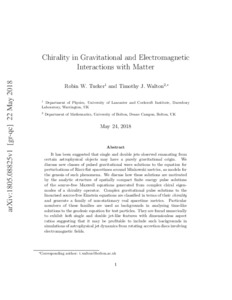 It has been suggested that single and double jets observed emanating from certain astrophysical objects may have a purely gravitational origin. We discuss new classes of pulsed gravitational wave solutions to the equation for perturbations of Ricci-flat spacetimes around Minkowski metrics, as models for the genesis of such phenomena. We discuss how these solutions are motivated by the analytic structure of spatially compact finite energy pulse solutions of the source-free Maxwell equations generated from complex chiral eigen-modes of a chirality operator. Complex gravitational pulse solutions to the linearized source-free Einstein equations are classified in terms of their chirality and generate a family of non-stationary real spacetime metrics. Particular members of these families are used as backgrounds in analyzing time-like solutions to the geodesic equation for test particles. They are found numerically to exhibit both single and double jet-like features with dimensionless aspect ratios suggesting that it may be profitable to include such backgrounds in simulations of astrophysical jet dynamics from rotating accretion discs involving electromagnetic fields.
