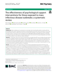 The effectiveness of psychological support interventions for those exposed to mass infectious disease outbreaks: a systematic review.