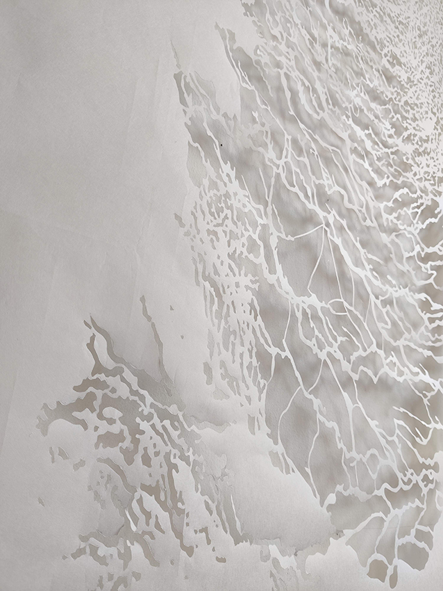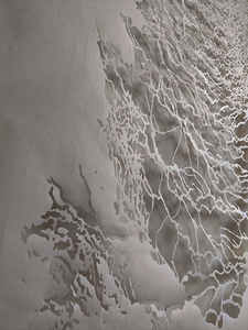 Measuring States I # II are two hand-cut paper panels. Drawings created through absence they are intended as the beginning of a conversation to invite considerations about how we imagine unseen landscapes and read invisible traces.