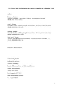 Recent years have seen increased attention paid to both student participation and wellbeing at school. Little research to date has investigated the extent to which participation is associated with wellbeing, let alone which specific elements of participation may predict wellbeing. This paper reports the quantitative phase of a mixed-methods study investigating these associations. Students (N = 1,435) from Government and Catholic high schools in New South Wales, Australia, completed an online survey. Hierarchical regression analyses showed that having a say with influential people, having choice, having influence, and working together significantly and positively predicted wellbeing. Simply having ‘voice’ did not significantly predict wellbeing. Mediation analyses showed that student participation fostered recognition – giving and receiving care, respect and valuing others – which in turn fostered wellbeing. The results suggest schools endeavouring to strengthen student wellbeing would benefit from identifying whether and how participation initiatives create the conditions for recognition to occur.